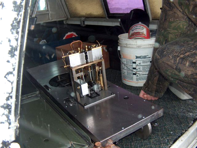 Inside the station Marty Pinkston, Ken Brooks and Marcel Uhrich are trying to get warm. Richard Sales brought his electric powered engine which he sells kits through M.R. Motion. |