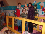 Debbie Bodemer, Jake Knox, Edith Hacker and Pam Znidar in Candyland which is set up for the holidays in the Ranger station. Jake taking advantage of the slide in Candyland. |