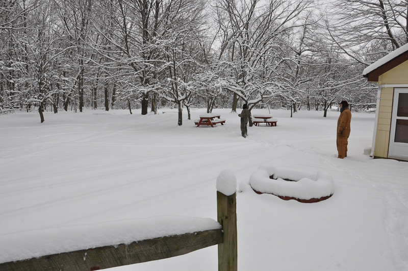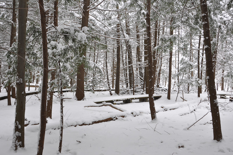 The wet snow was so heavy that the young fir trees had a difficult time standing upright. The snow created some beautiful scenes as is the case with our Covered Bridge, as a silent sentinel waiting for a train to rumble through with the sound echoing off its supporting walls. |