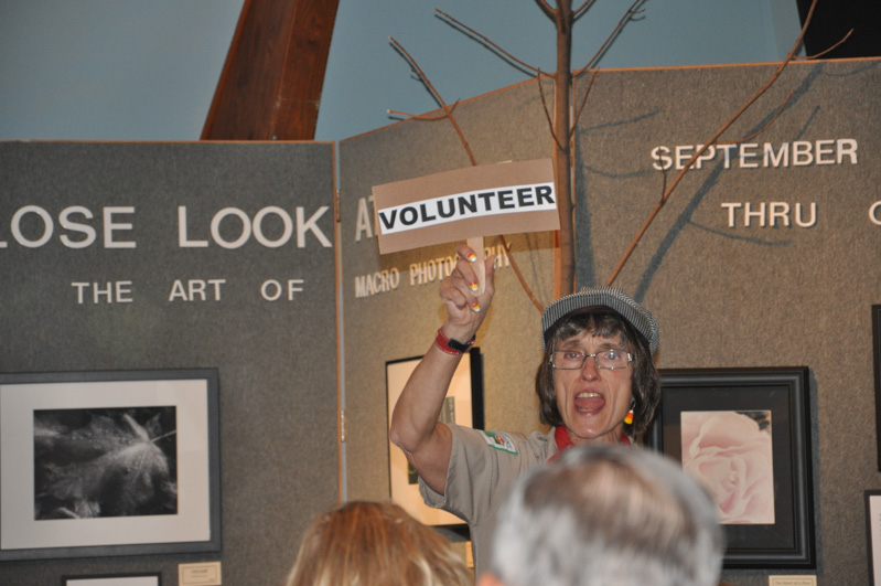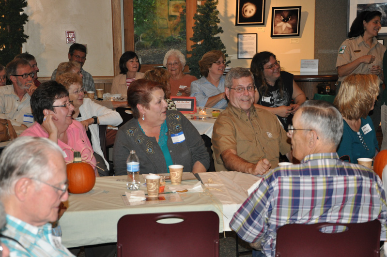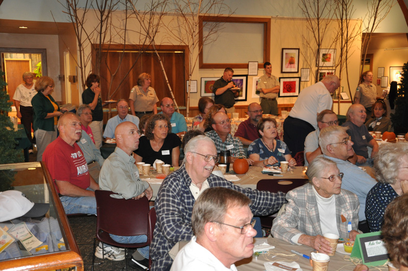 After dinner with the attendees enjoying their desert and good conversation, Dan Burnett gave a synopsis of the volunteers and some of the programs that they're doing at the Park while a slide show presentation was being shown. Jann Glove was our MC for tonight's activities after dinner as she had prepared a dissertation. |