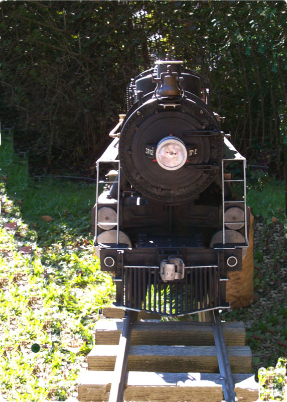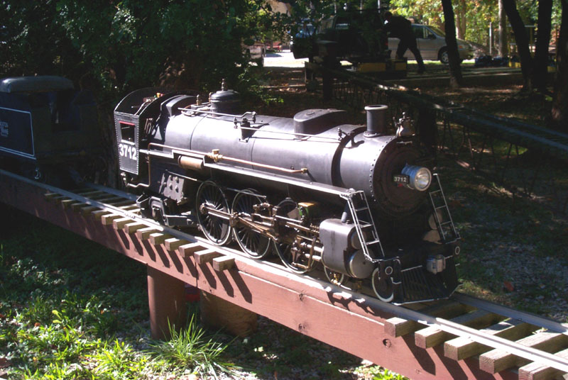 Frank Fotis' newly purchased Pacific engine resting in the steaming bay waiting for a boiler pressure test and it's first run with Frank at the cab. |