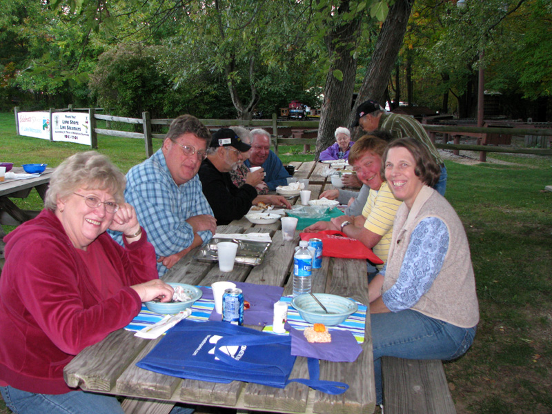 Even more smiling faces with alot of empty bowls in front of them and there was plenty left even after seconds. John, Ethan and Amy Deptowicz with Jonathan Schwartz head for the loading area as we have a club meeting at 7 p.m. to attend. |