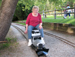 As Ken brought the engine out of the by-pass track towards the main line East Wind decided to pick the points of a switch so her front truck came off the tracks. Judson Elloitt at Horrendous with his family. |