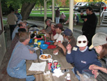 Our cook extradordinare, Robbi Haines, who comes up with the ideas for the Hobo Stew and cooks for our work gangs during the Wednesday work sessions. It's been acclaimed the food is done and the line begins to form. |