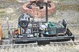 A close-up of Bob's diesel engine showing the engine, the hydraulic pump, the oil reservoir tank for the hydraulic motors and the starting battery with the radiator in front. Another view of the engine showing the scratch built frame. |