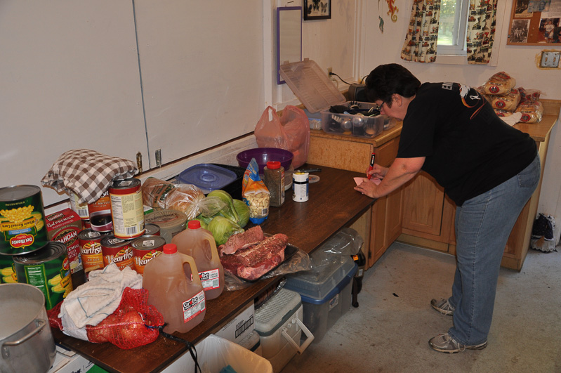 Today is our famed hobo stew dinner that's cooked in a cauldron over a fire and Robbi Haines is checking the list of food to get started. Gherin Johnston brought his pair of New York Central diesels which are diesel powered. |