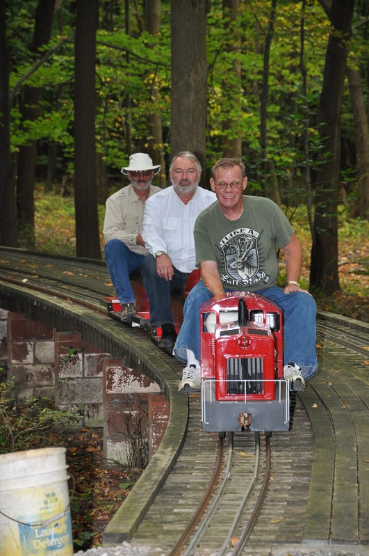 John Deptowicz gives a satisfied smile as he poses with six of the club's coffee mugs purchased at the reduced price that Kitty was selling them for. Later, Paul and his train giving rides to members and guests. Thanks to Robbi Haines for putting the meal together again this year. |