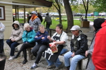Members and guests form a long line to get served one by one as the hobo stew is doled out on their plates or bowls. Some views of the group sitting around the tables enjoying the hobo stew. |