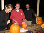 Josh Frank working on his pumpkin to make a one of a kind masterpiece. Mike, John and Logan Tapolyai look to be in deep concentration with the carving at hand. |