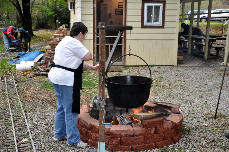 Bob "2 Bowl" Wilson, one of our members who lives in Jackson, Michigan enjoys attending our Hobo Stew event every year. Ethan standing out in front of the station with one of the poles that we used to prod the fire as darkness settled in. |
