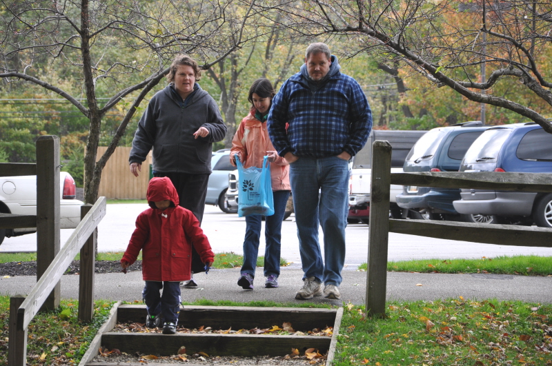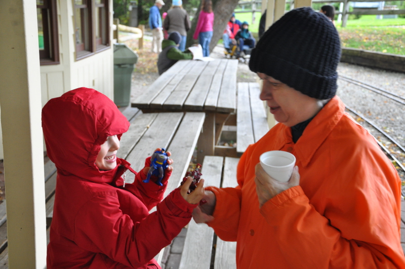 Ethan Deptowicz with Colleen Roberts, Amy and John Deptowicz as they arrive for the Hobo Stew dinner. Ethan and Judy Oscker share a moment as Ethan explains his action figures. |
