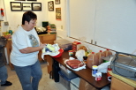 Some very satisfied members enjoying the fruits of Robbi's labor. Marty Pinkston assisting Robbi in doling out the delicious stew to the young attendees. |