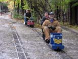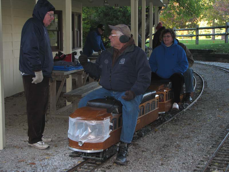 Rick Nagy with Wally Pausch arrive back at the station after a cold run. Alex is taking a guest for a ride behind Joe's interurban. |