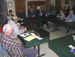 Our monthly club meeting was after we finished eating and at 7 pm and this view is looking forward at the officers at the head table. A view looking toward the members in attendance. |
