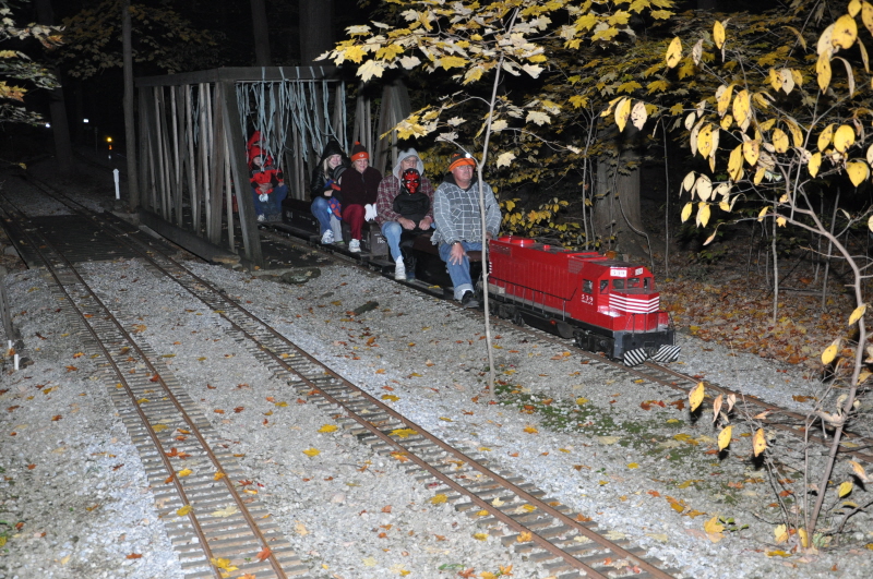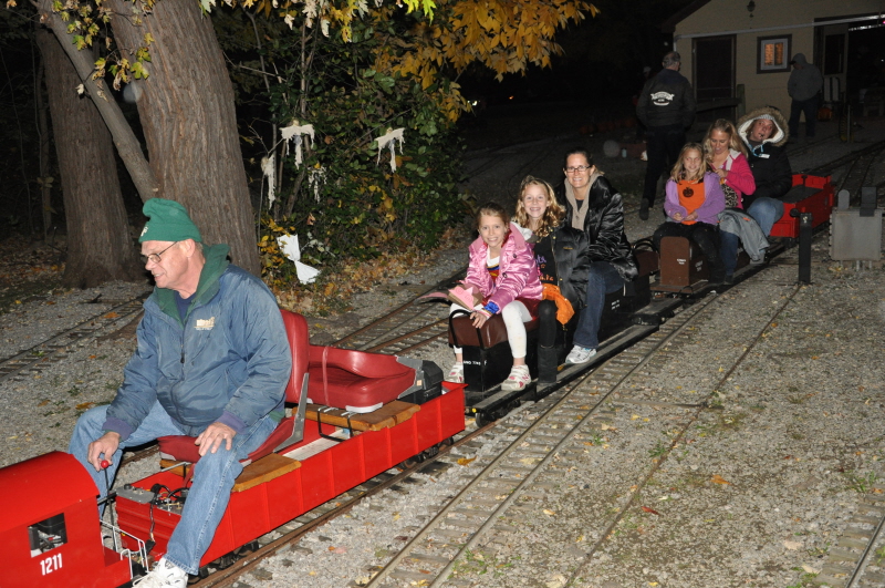 Back at the station Rick waits for the rest of his train to be loaded with passengers before he departs. Costumes abounded tonight as the theme was for Holloween. |
