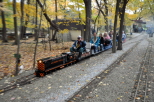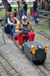 Ken Vendlinger waits for his passengers to get their riding instructions before he departs the station. Judson Elliott with his trainload of passengers slowly gains speed as he leaves the station on his first run. |