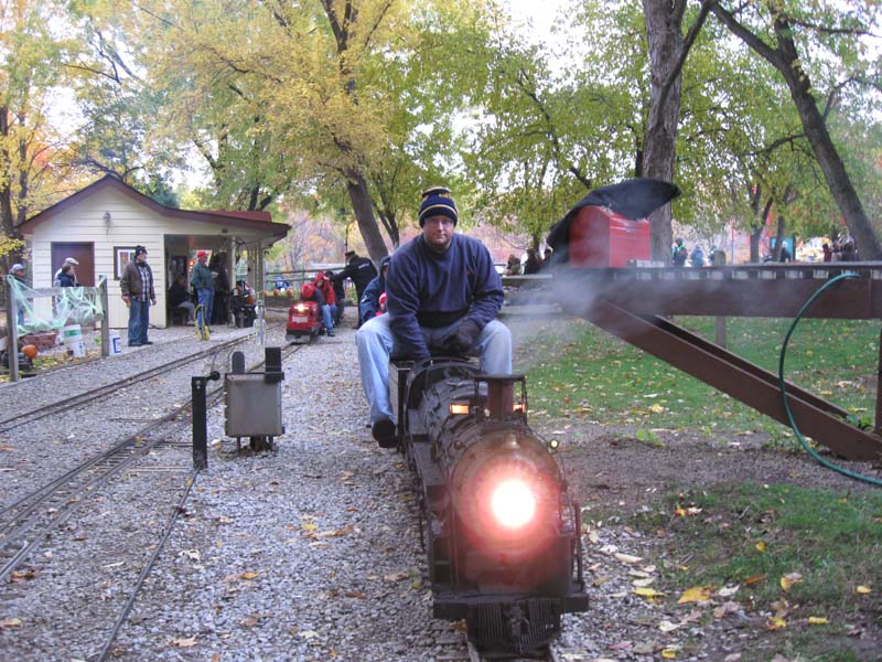 As Mitch pulls in Pam Znidar is there to assist in unloading and Karl and Kathy are behind Rick. Karl on the Hudson with Steve Zaken on the rear as his conductor. These 12 photos courtesy of Joe Laskowski. |