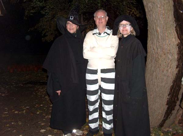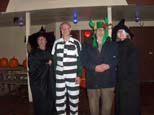Robbi, Ron with Mike and Roberta Uhrich pose for the camera and now we have three witches. Roberta holding a pumpkin by Marie Nyland who looks like she is concentrating too much. |