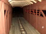 Ken Vendlinger parked the the tree and covered his riding car from the rain tree but the spider web wasn't there a minute or so ago. Is the train parked in the covered bridge because of the rain. |