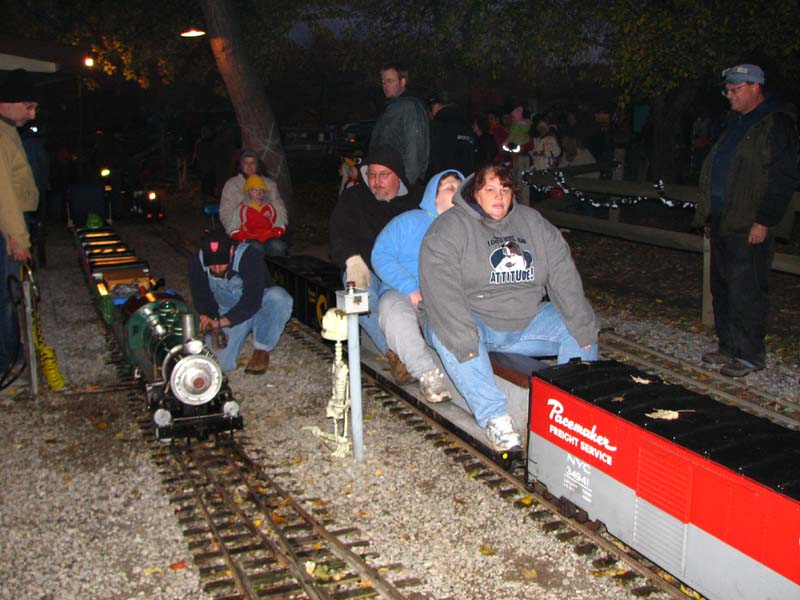 Wally Pausch with his train is next to come along and the pumpkins in the background are all a glow. Some of the carved pumpkins |