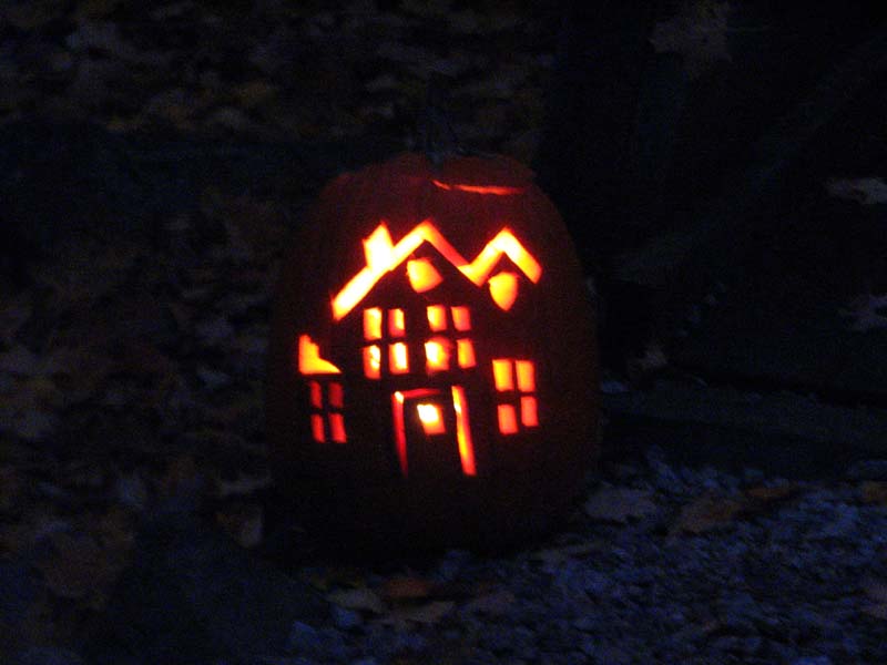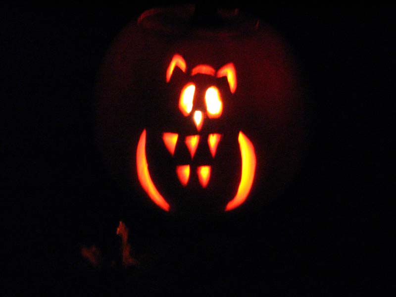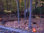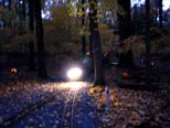 Another example of a carved pumpkin. Looking towards the Truss Bridge thru Mackeys Run the headlight of an on coming train lights the way. |