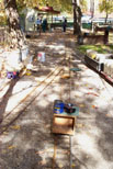 Dick cutting back the existing aluminum rail to further separate the rail joiners. Break time for everyone. Switch is tied in to existing rail and needs to be ballasted yet. |