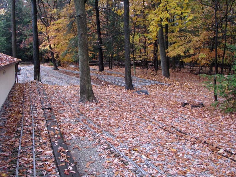 With the fall season comes the falling leaves which will encase everything on the ground in a blanket of leaves. Ted Nyland was in the switch shed cutting rail to make another No. 7 switch. |