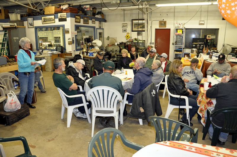 Kitty Shriver gives a report to the members at the meeting in Roberta Uhrich's absence. I think we all had a good time but wished it could of been a little warmer towards evening. |