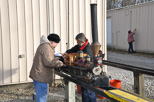 Dick arriving back near the loading area and those guys all look cold but having fun. The sun has set even lower and it's getting colder as Dave Foster heads back to the machine shop building for the meeting we have tonight. |