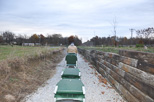 Taking one last run as I ride with Frank and we've veared off the 800 foot straight-a-way for the loop. This is what you would call a narrow truss bridge as East Wind rumbles out over it. |