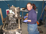 Frank Foti checking the throttle cable on engine 101. Joe Banzer checking the motor mounting bolts for tightness to make sure everything is all ready for Spring. |