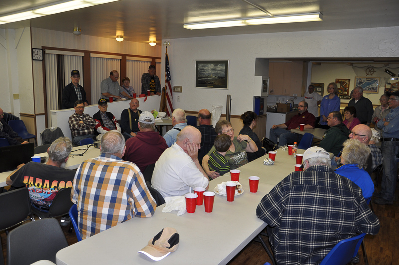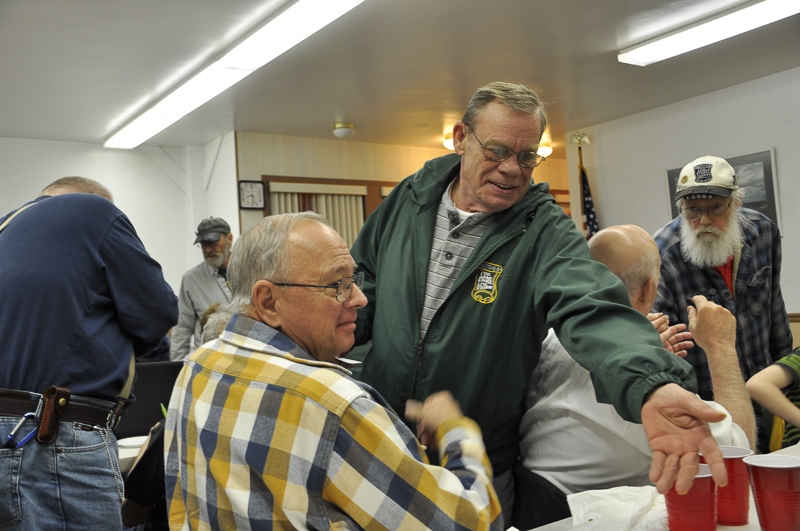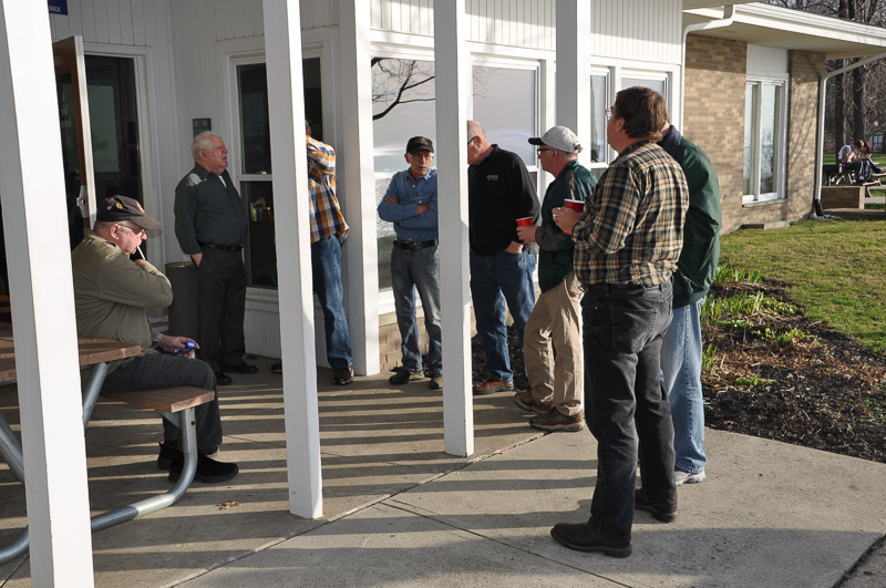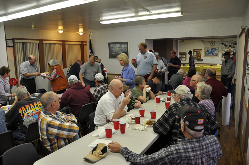 Frank Foti, Rick Nagy, Frank Smoley, Dave Hird and Andy Yedlick, in the foreground, enjoy the conversations. Some of the members present as today was the day that membership dues were to be paid. |