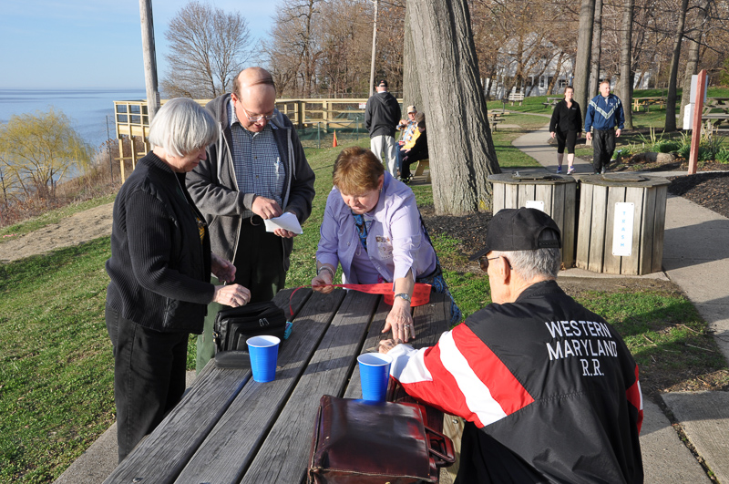 Kevin explaining Metroparks Emergency Operations/Actions manual giving us a brief rundown for the manual that will be in our station for us to read. Paul Zorko collects the voting ballots as he leans over Harry Tabor. |