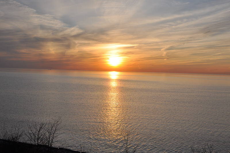 My son John Deptowicz stepped outside with my camera and took a picture of the blazing setting sun as it was getting lower to the horizon. The same view that you would see without using the telephoto lens of the setting sun. |