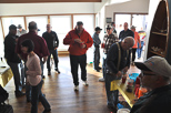 Pat Morris of the Park service, explained to us that because of the new flooring, when we break down for evening not to drag the tables on the floor. A view from front of the room looking towards the rear at our members. |
