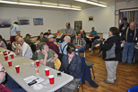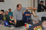 In this picture we have Frank Smoley, Judson Elliott background, Steve and Bonnie Zaken, Edith Hacker, Skip Frank and Andy. A view across the room from where I was sitting of the members as we wait for the presentation. |