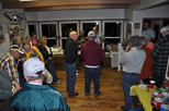 The Lake Front Lodge has been making improvements to the property and here we see the new observation deck. Waiting for the food to arrive, the members gathered inside and outside on the patio of the Lodge. |