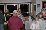 Judy Oscker buys some raffle tickets for our Chinese raffle that Karl and Kathy Losely were selling before dinner started as Bill hands over his money for some tickets. Inside the lodge they had some snacks that were set out which the members were enjoying as they waited for dinner. |