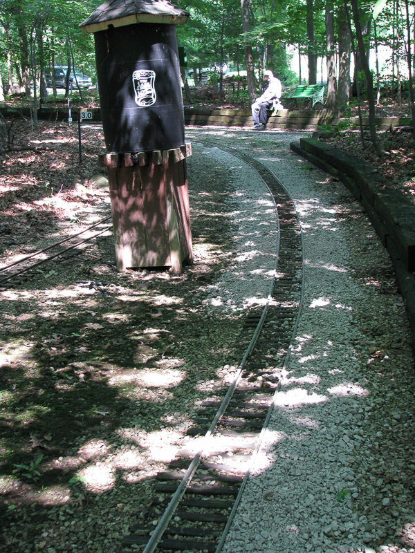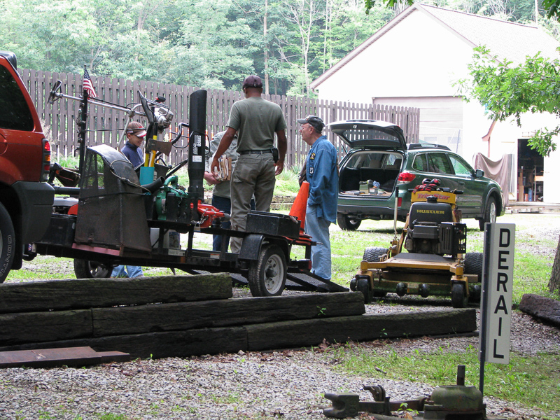 The crew went for another load of ballast so they could finish the track in the foreground as Dick takes a breather sitting on the grade wall in the background. Back up at the station by the steaming bays, the guys had finished the repairs on the plumbing and the hole was filled in so that takes care of another task. |