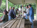 Josh Frank, George Metts, Perry with his back to us and Steve Zaken have a conversation going. Perry, Frank Smoley, Dave Hird, George Metts, Bonnie Zaken, Ron Malinowski and Steve Zaken up at the station with a light sprinkle of rain coming down. |