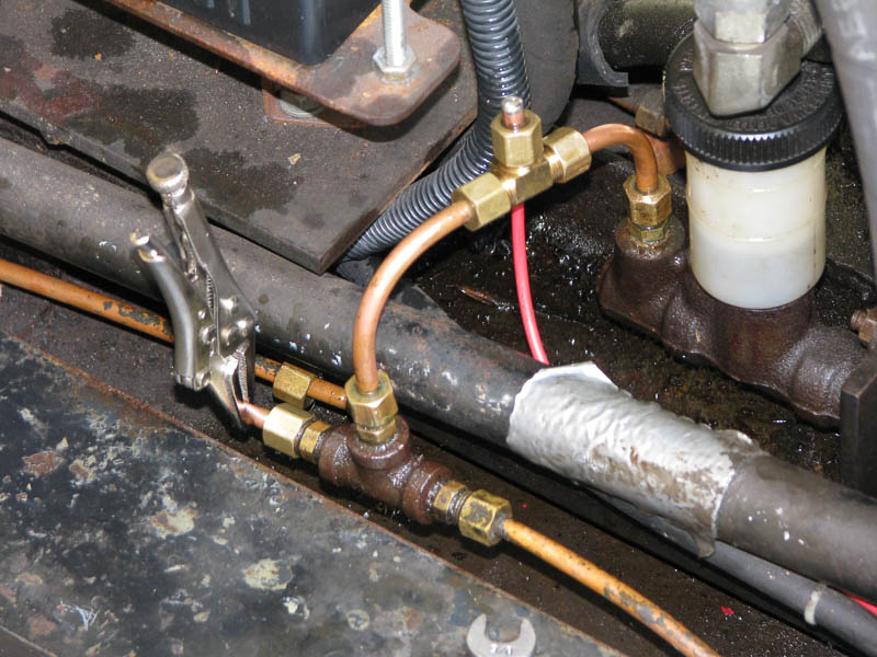 Frank was having a problem trying to get air out of the line for the disc brake on the engine. Frank and Wayne Boron worked on the problem and came up with a solution and finally got the problem cured and now it will be easier to bleed the brakes on Big Red. |