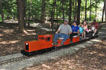 Bill Deptowicz is all smiles as engineer of the Snoppy train as the train passes over Cider Bridge. Bob at the same location with his passengers will soon be pulling into Shriver Station. |