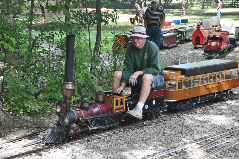 Okay, I know that there was a fire in the firebox, but where did that mouse crawl to up under there? Dick getting ready to take his boxcab, that he built, for another run. |