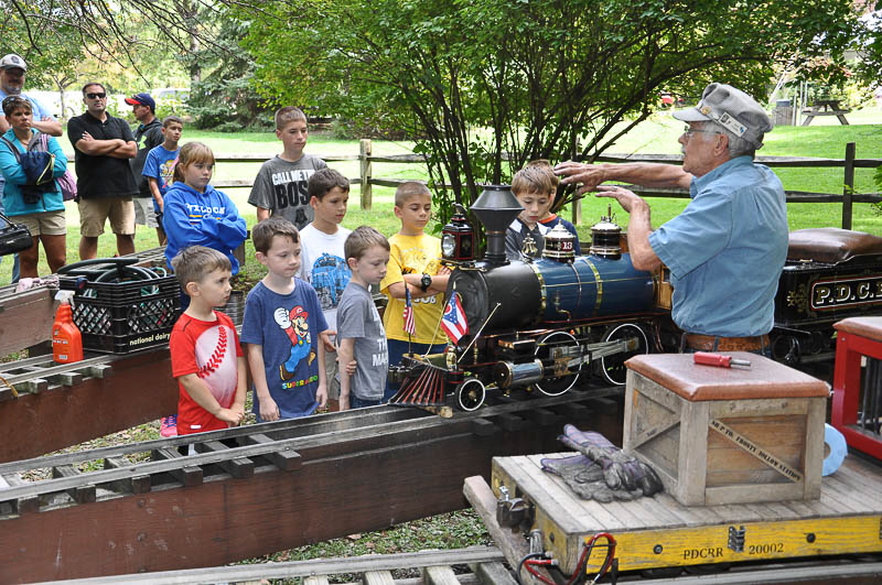 Club members and family members of Cub Scout Pack 306 seem to enjoy the demonstration put on by Skip, especially the whistle. With the conclusion of the talk they where told they could ride the trains. |