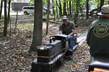 I didn't get the name of this lass but she sure enjoyed the hand powered riding car that George Metts brought to the event. Steve and Bonnie Zaken arriving back at Shriver Station with their Plum Cove engine detailed for "Good & Plenty". |