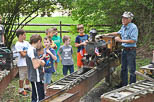 While he described the engine parts the drivers were turning and they could see close up how the side rods on the wheels gave the engine motion. A steam engine coming in to the station provided a temporary distraction. |