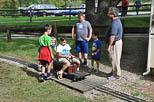 Scott running through the switches as he heads for the mainline with his passengers. We invited Cub Scout Pack 306 to our Club Run and Skip Frank gave a talk and demonstration of the workings of a steam locomotive for them. |