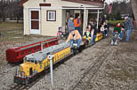 After a long wait these riders can still smile as the Fireball Express starts rolling. This family is ready to ride as they wait for the train to start moving. We would like to thank the public as we usually give between 200 and 300 rides for our winter run but today we had 979 riders because of warm weather. |