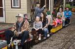 The line was so long some of the riders said they waited almost an hour and a half but they were good natured about it since we had a large turnout. Dick leaving the station with another load of passengers. |