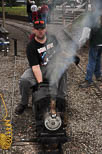 I wonder if the one young lass seems to be thinking "Oh come on mom, take the picture so I can get out of this car." Dave Woldman advances the throttle as the big engine starts it's next run as the train with the passengers depart the station. |
